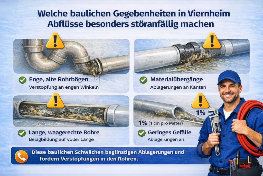 Was macht Abflüsse in Viernheim besonders störanfällig?